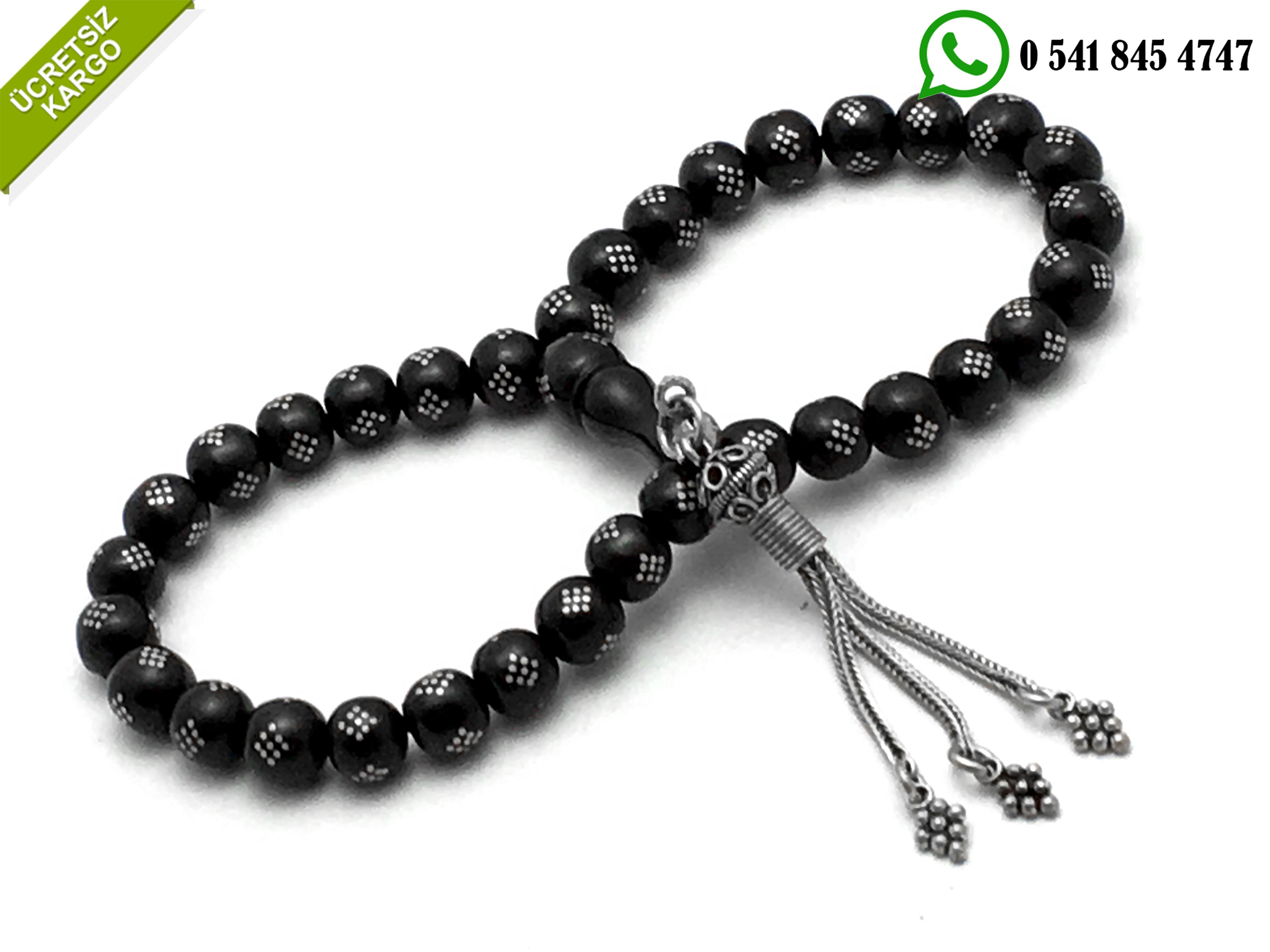925 Ayar Gümüş Püsküllü Gümüş İşlemeli Gürcistan Oltu Taşı Tesbih Stok Kodu:2018208 |