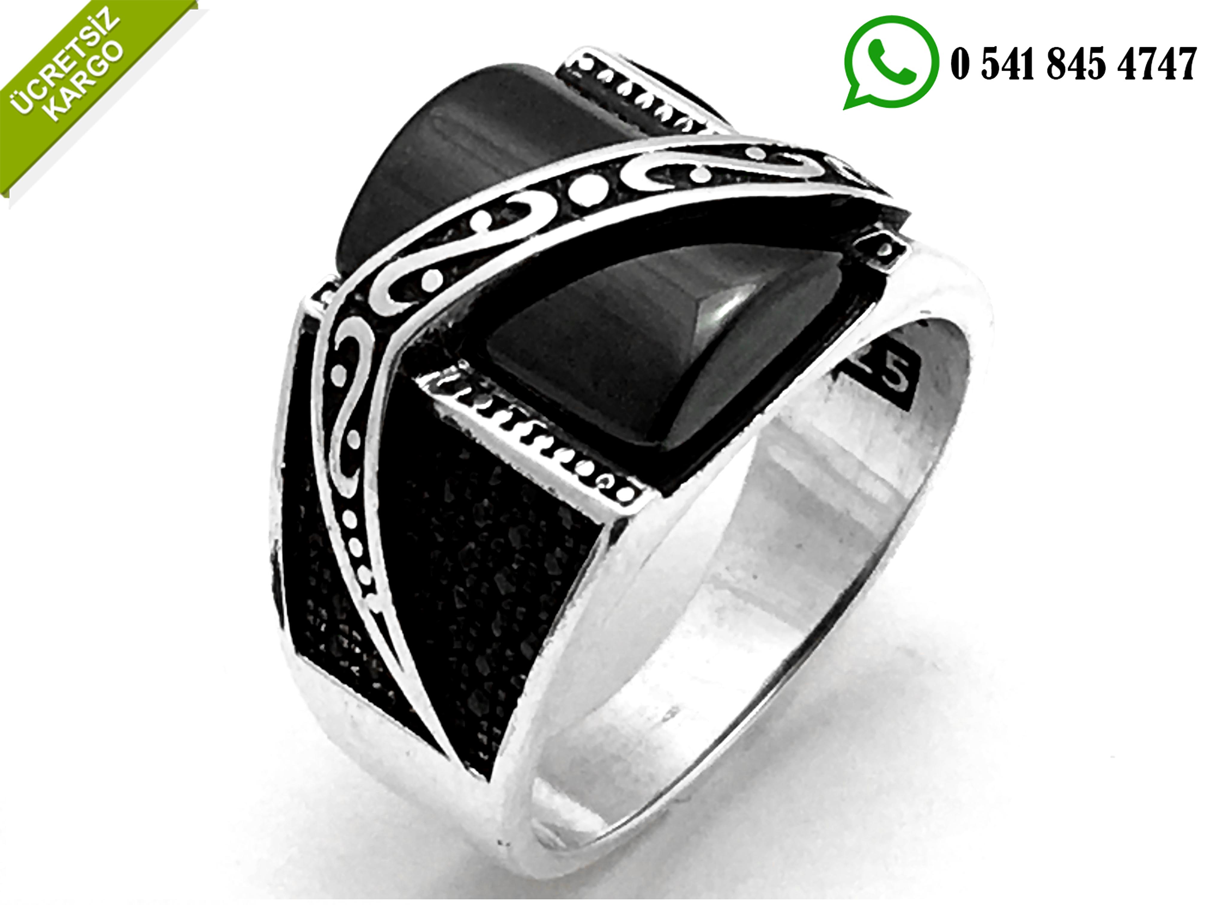 925 Ayar Oniks Taşlı Özel Tasarımlı Gümüş Erkek Yüzük Stok Kodu:2018268