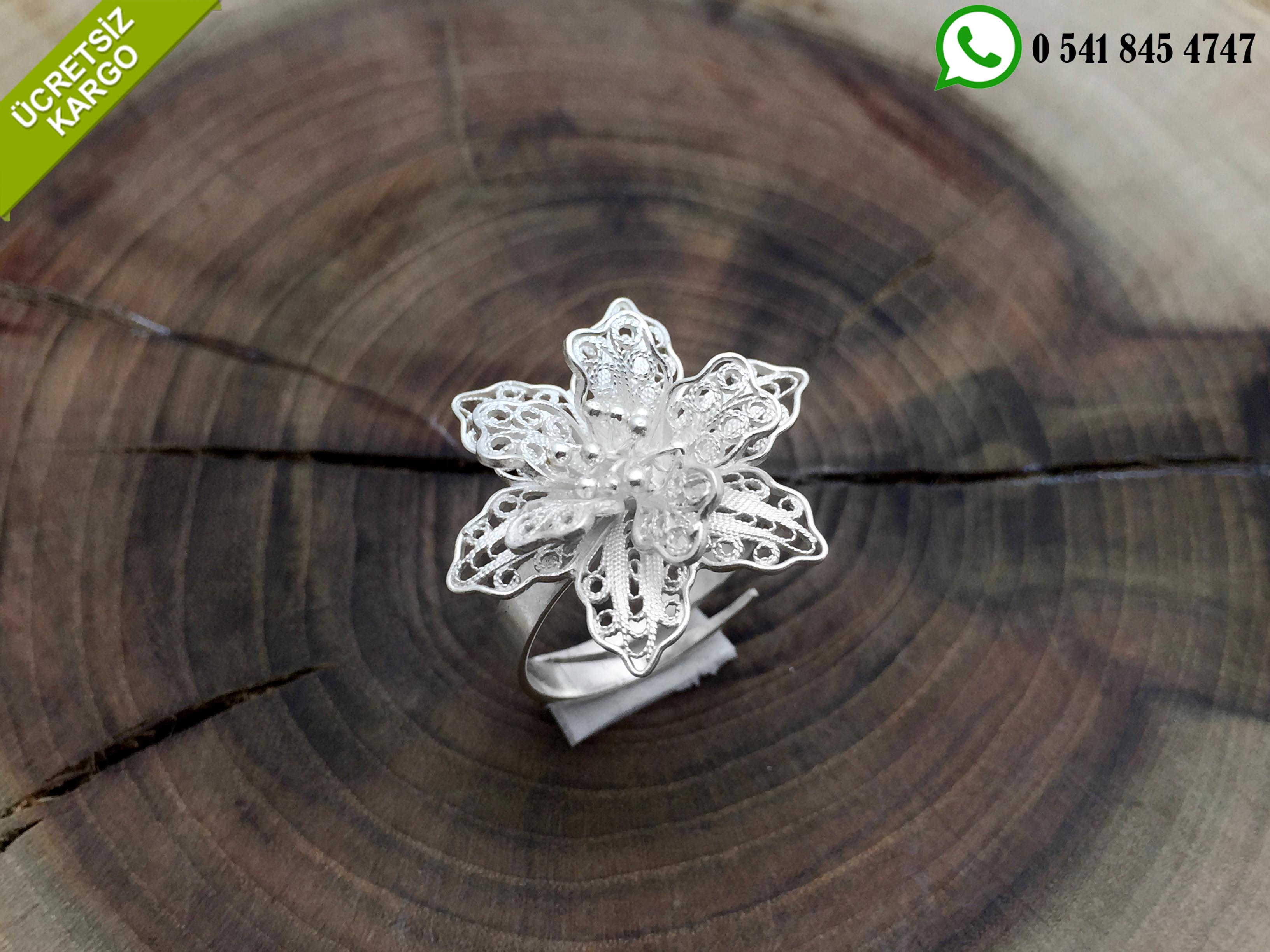 Çiçek Model Elişi Telkari Gümüş Bayan Yüzük Stok Kodu:20172430