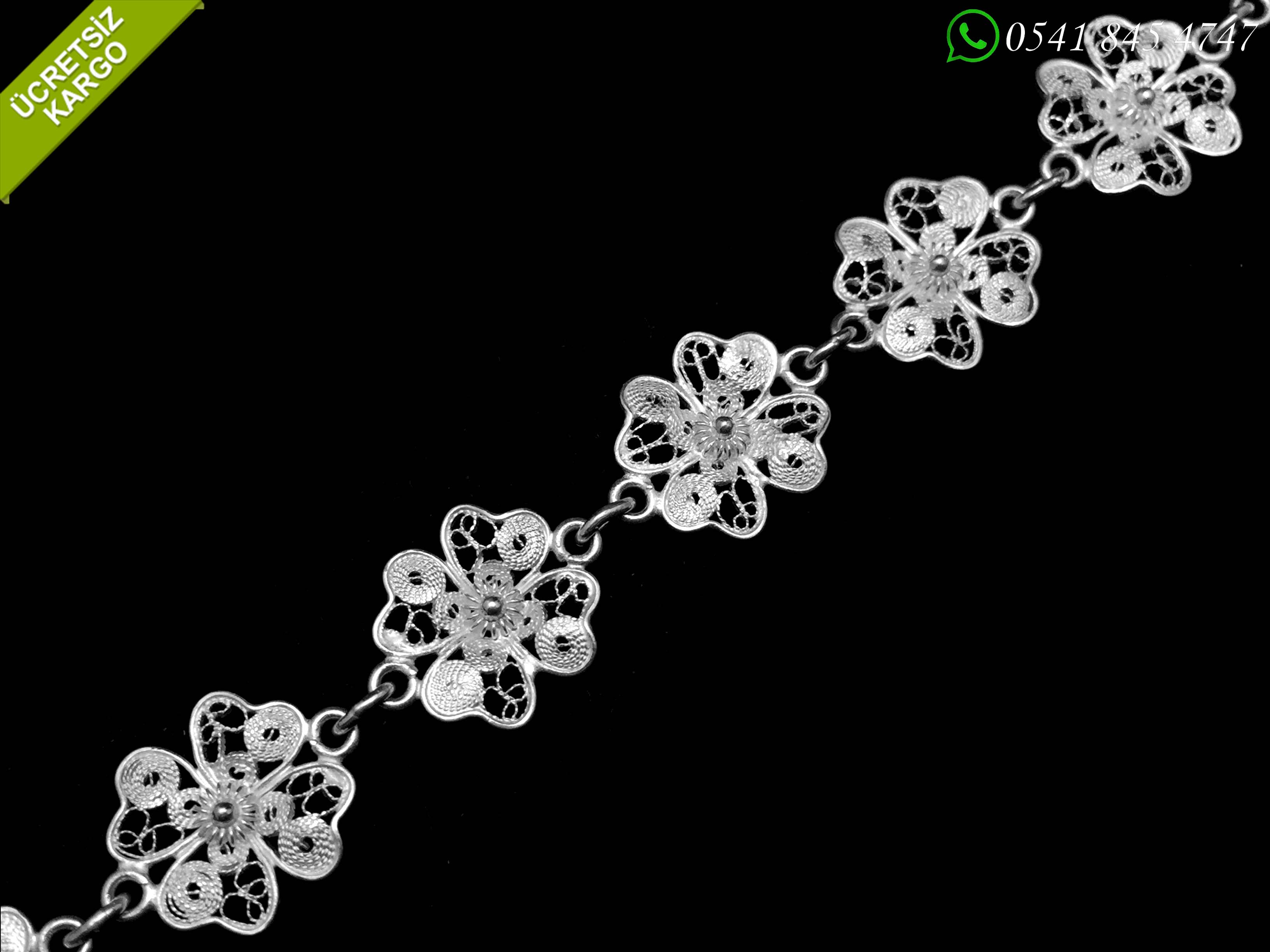 Kişniş Ve Çiçek Model 925 Ayar Gümüş Bayan Telkari Bileklik Stok Kodu:20172235