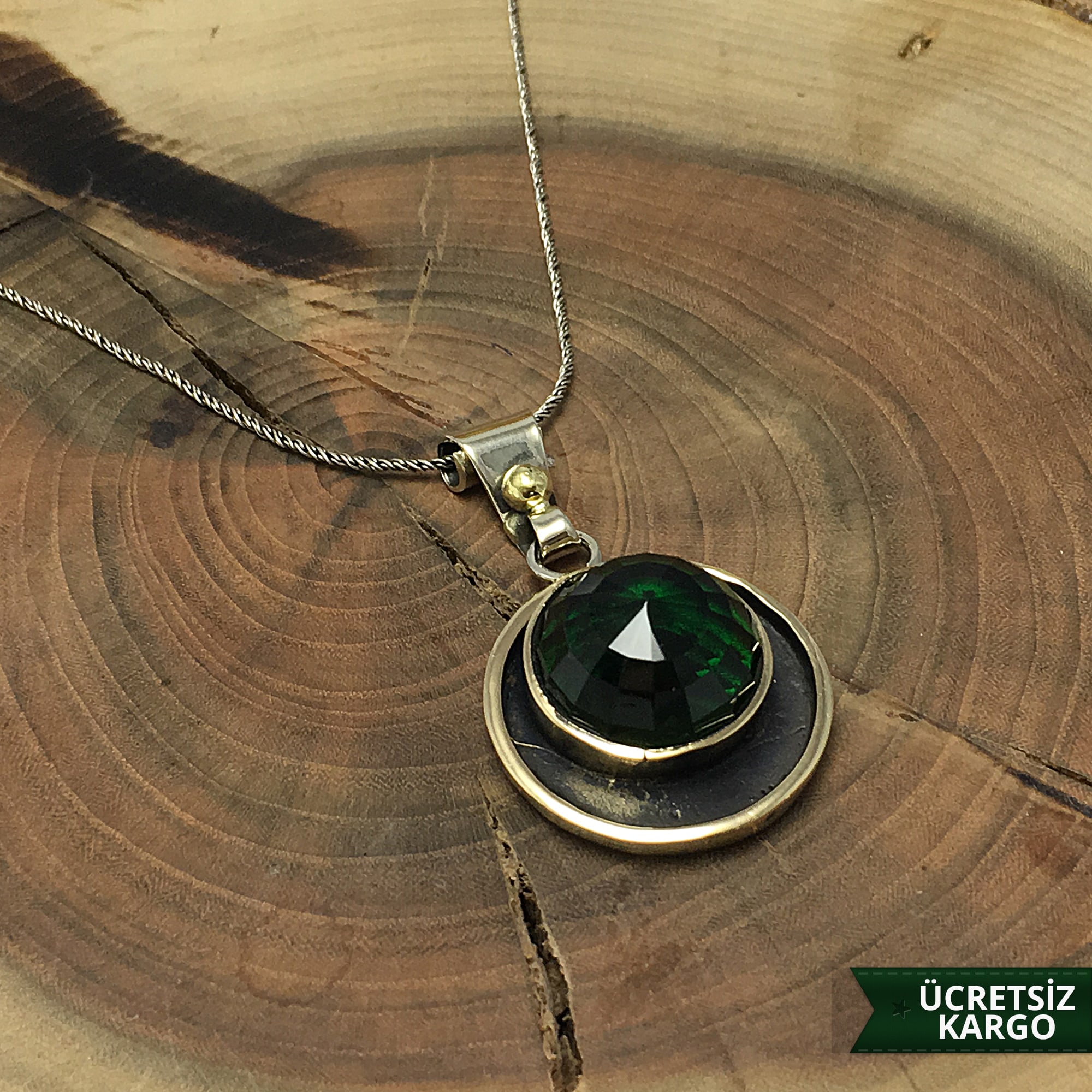 Zümrüt Taşlı Hilal Model 925 Ayar Gümüş Bayan Otantik Kolye Ucu Stok Kodu:20172050
